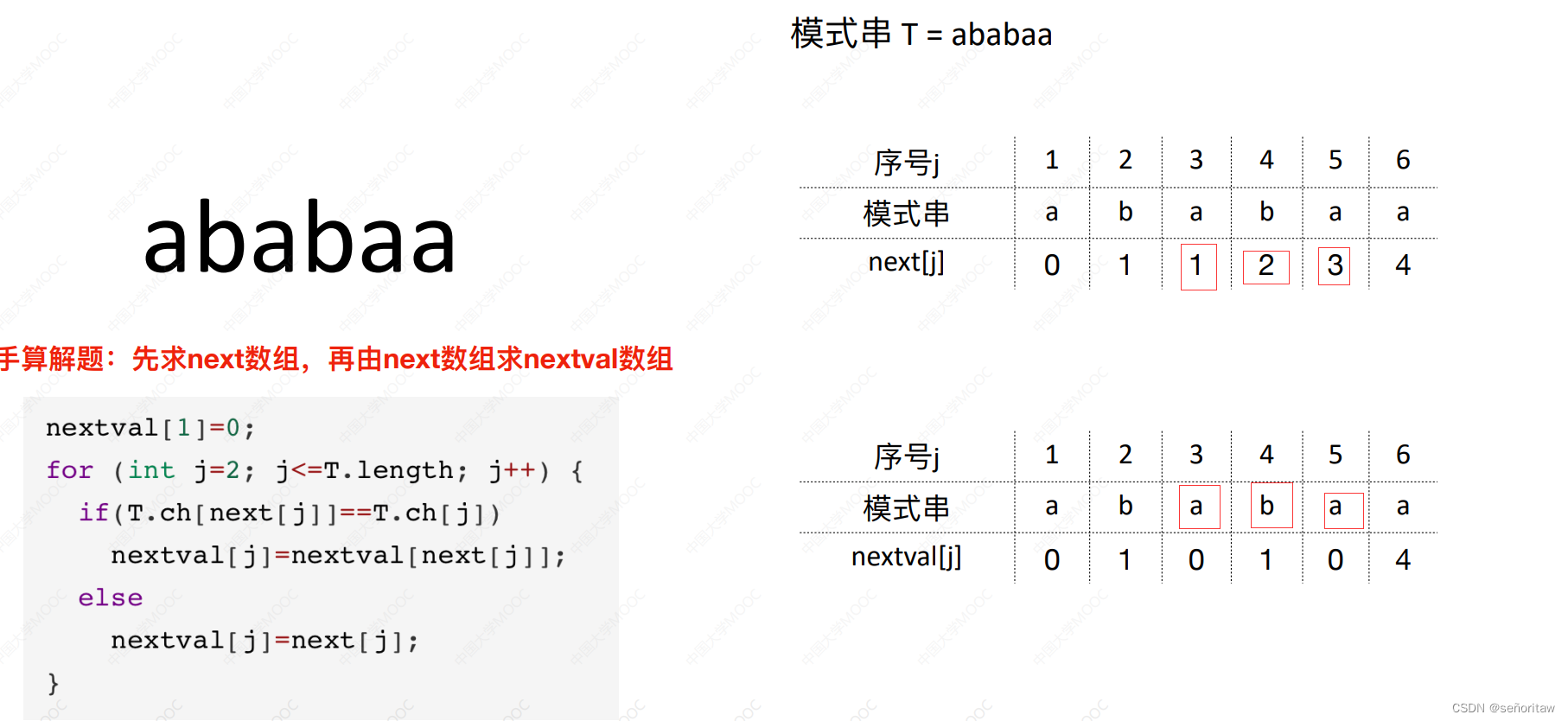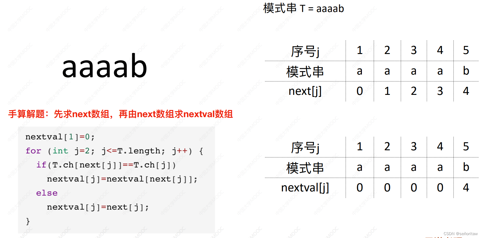 优化前后匹配代码不变,只改模式匹配数组,即将原next数组优化为nextval数组