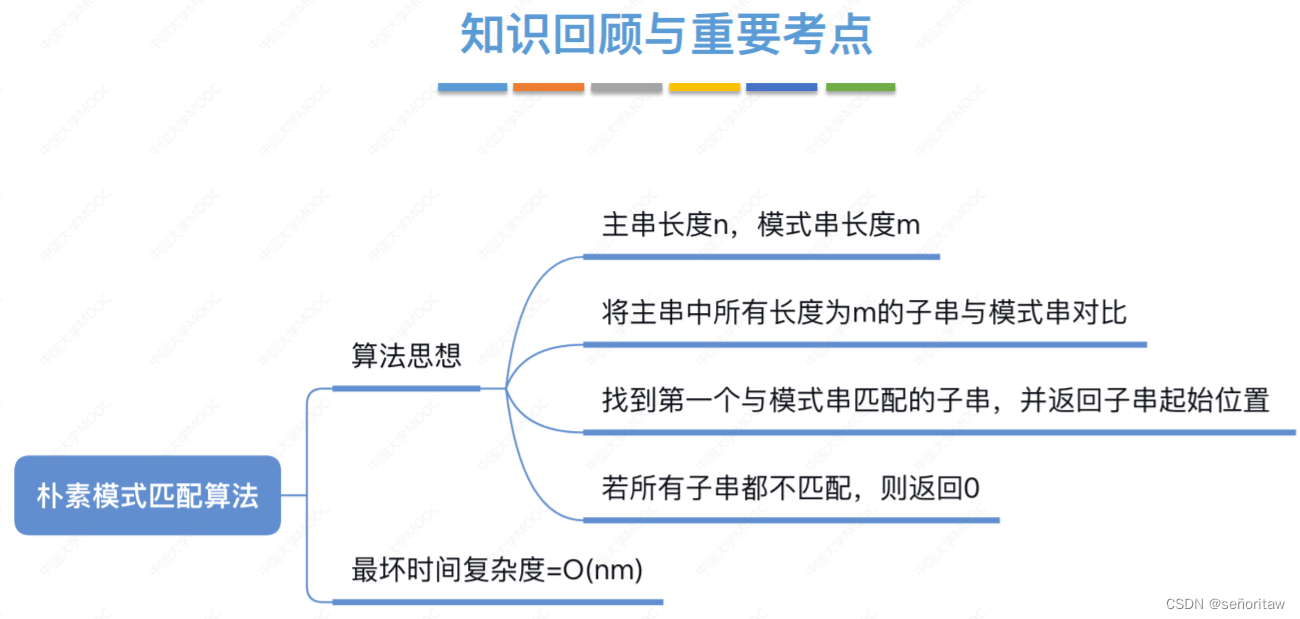 KMP算法最坏时间复杂度 O(m+n) 其中,求 next 数组时间复杂度 O(m) 模式匹配过程最坏时间复杂度 O(n)